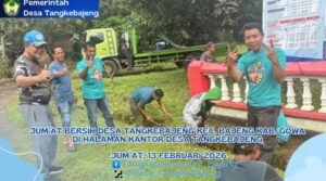 Kepala Desa Tangkebajeng Beserta jajarannya melakukan kegiatan jum’at bersih “Gowa Annangkasi” di halaman kantor Desa Tangkebajeng